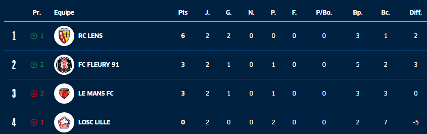 Buts : Hoarau (63′) pour Le Mans ; Proniez (27′) et Archier (90′) pour Lens.