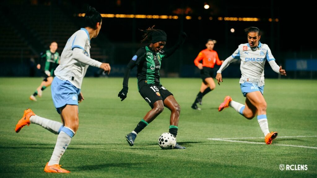 Face à un autre promu en difficulté, le RC Lens Féminin subit d’entrée mais se montre solide et attentif. Il faut attendre le milieu de la première période pour voir l’Olympique de Marseille se montrer dangereux devant la cage de Blandine Joly, avec une tête de Marta Carro hors cadre (21′). Sur une des rares incursions Sang et Or, Kaïna El Koumir, trouvée aux vingt mètres, prend sa chance, mais le ballon atterrit directement dans les gants de Margot Shore (27′). Une fois la demi-heure passée, Marseille, sur ses terres, veut faire la différence et multiplie les attaques. Sur l’une d’elle, Mathilde Bourdieu contraint notamment la gardienne artésienne à une claquette (32′). À la pause, le Racing tient donc tête à l’équipe phocéenne et peut légitimement espérer obtenir un résultat sur la pelouse du Stade Francis Turcan de Martigues.